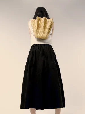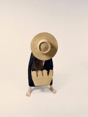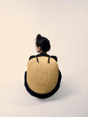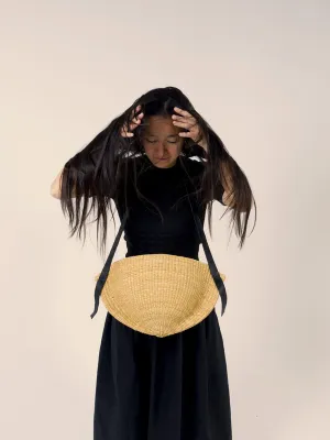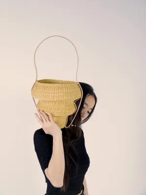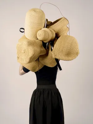 These straw bags have been woven by Bashiru, Yaa, Apana, Azaare, Akamae, Philemon and Stella during the winter 2014-2015, in Northern Ghana. I had several months there to learn about the weaving techniques and to imagine new directions with the weavers. Back in France I shaped the basic woven shapes into new forms which became the bags, adding black leather handles to contrast with the golden straw. I called the series AKAMAE, referencing a very talented weaver I worked with, and in 2018 I submitted it to the Accessories Price of the villa Noailles in Hyères (France) where I was a finalist, and received my first order from the iconic store Dover Street Market Ginza in Japan. The potential of the material, the skills of the weavers and my curiosity have since allowed the AKAMAE collection to become a cornerstone of my work.