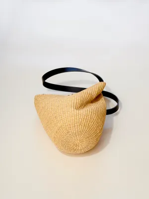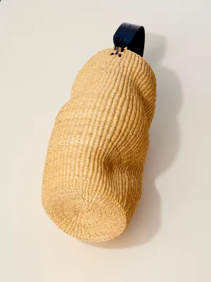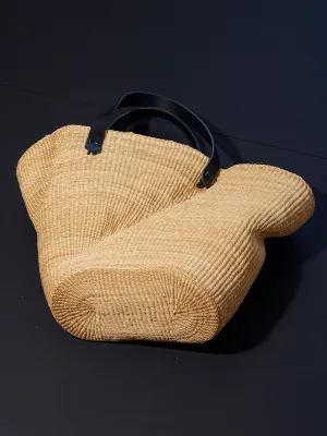 In this edition, we explore rotary movements, which we exaggerate while weaving. Large folds are formed, modelling the straw skin. This pulls the bags volumes into a frozen dance.